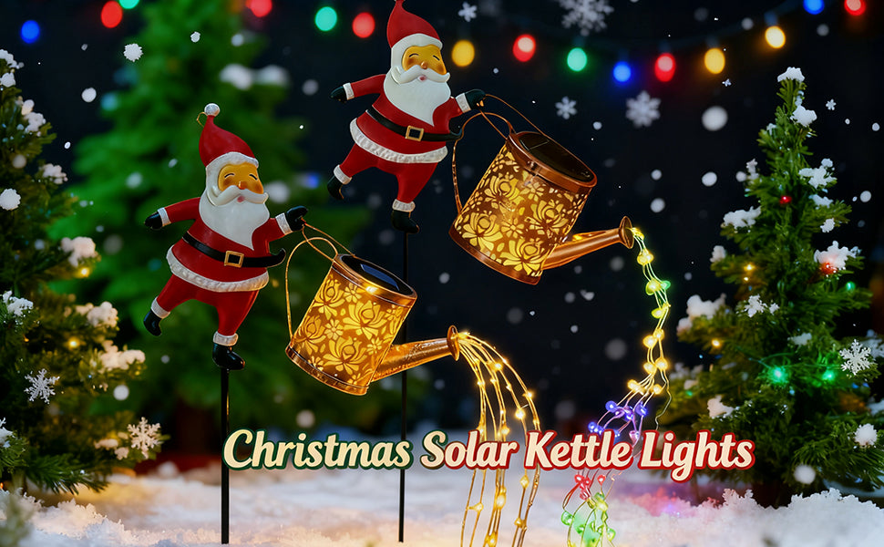 🎄Transform your outdoor space into a whimsical winter wonderland with our Christmas Solar Kettle Lights. Featuring a charming Santa design holding a glowing kettle, this delightful garden lamp “pours” cascading LED fairy lights that shimmer like a stream of Christmas magic.✨